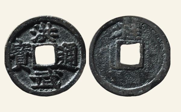 洪武通宝 背上“桂” 极美爆蓝 有漏