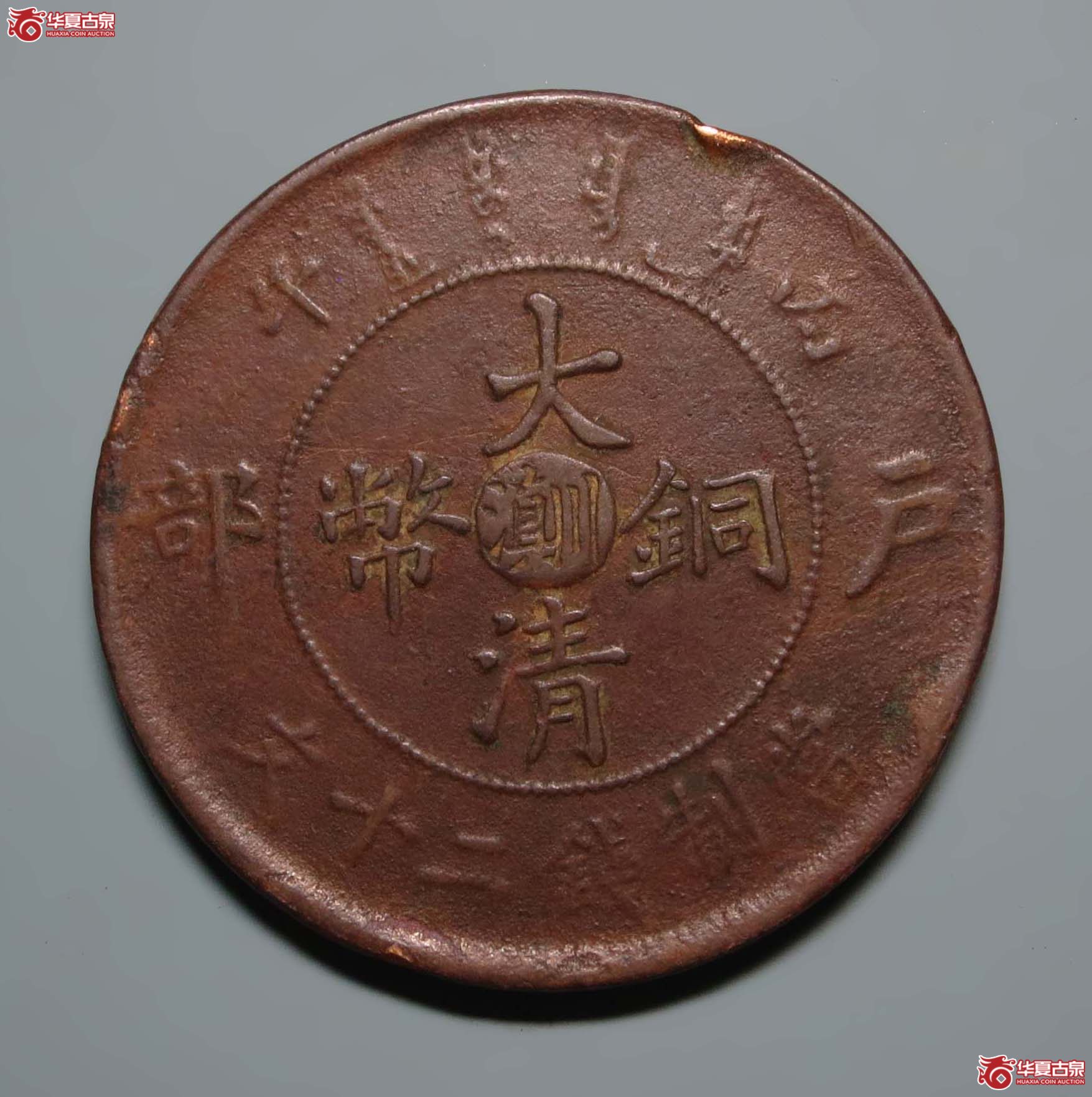大名誉品川滇二十文丙午户部大清铜币薄锈极美品