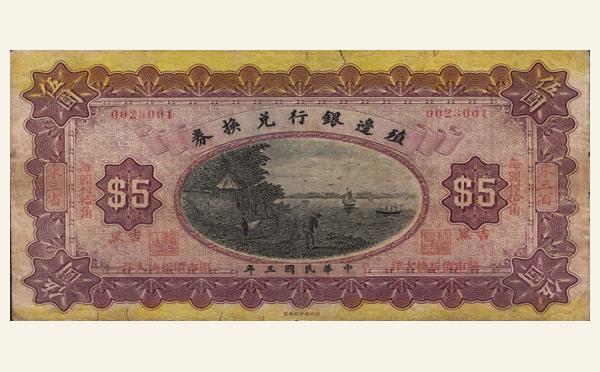 民国纸币民国三年殖边银行兑换券伍圆(东三省吉黑)