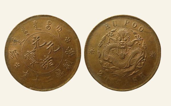 清户部光绪元宝二十文铜元左右尺寸24.75厚1.42毫米