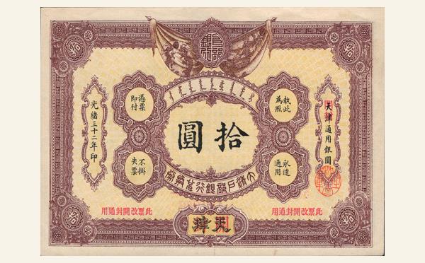 - 清朝纸币清朝纸币大清银行兑换券拾圆红票