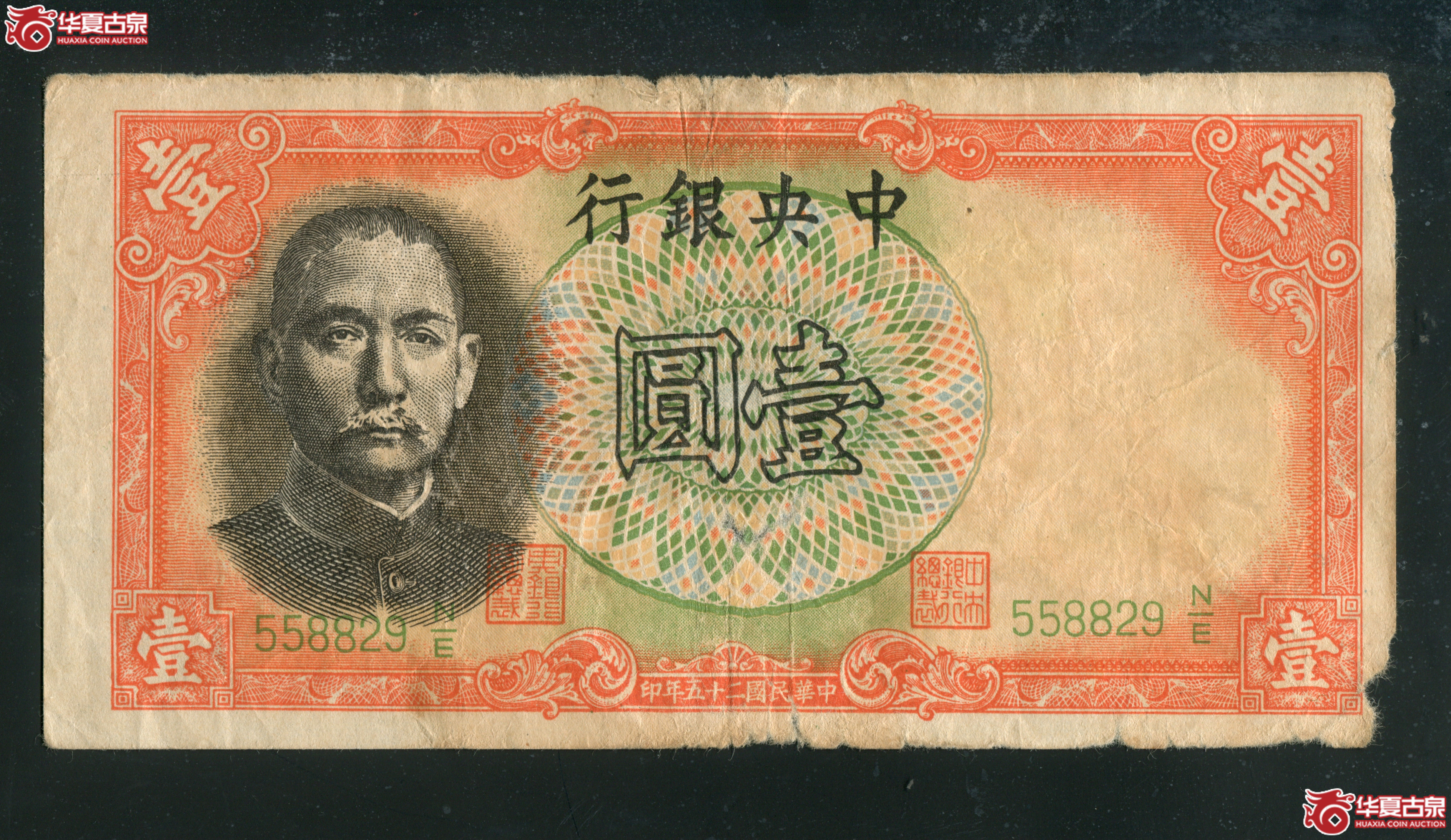 民国纸币民国二十五年中央银行壹圆军队归来证