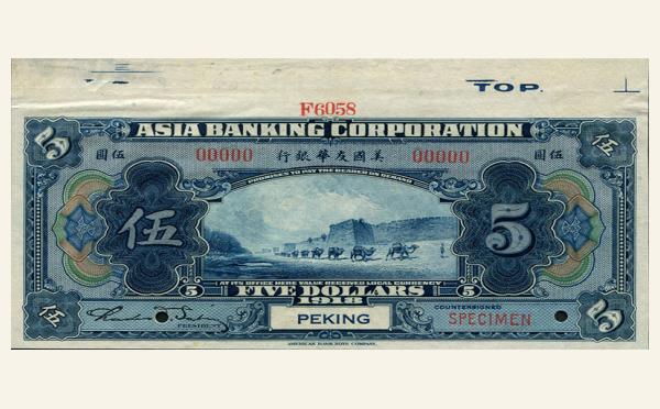 M110/民国7年美国友华银行伍圆票样北京地名PMG63EPQ/