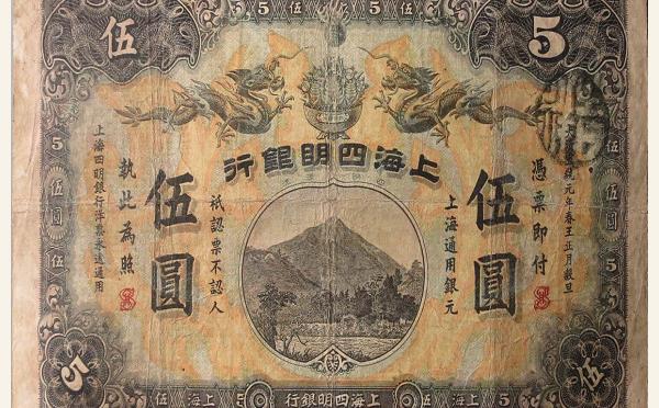 清代纸币清朝纸币上海四明银行伍圆宣统元年