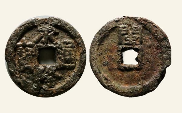五代十国时期铜钱永隆通宝折二背上闽铁钱