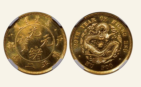 209NGCPF67光绪二十九年户部光绪元宝库平二钱银币金质样币