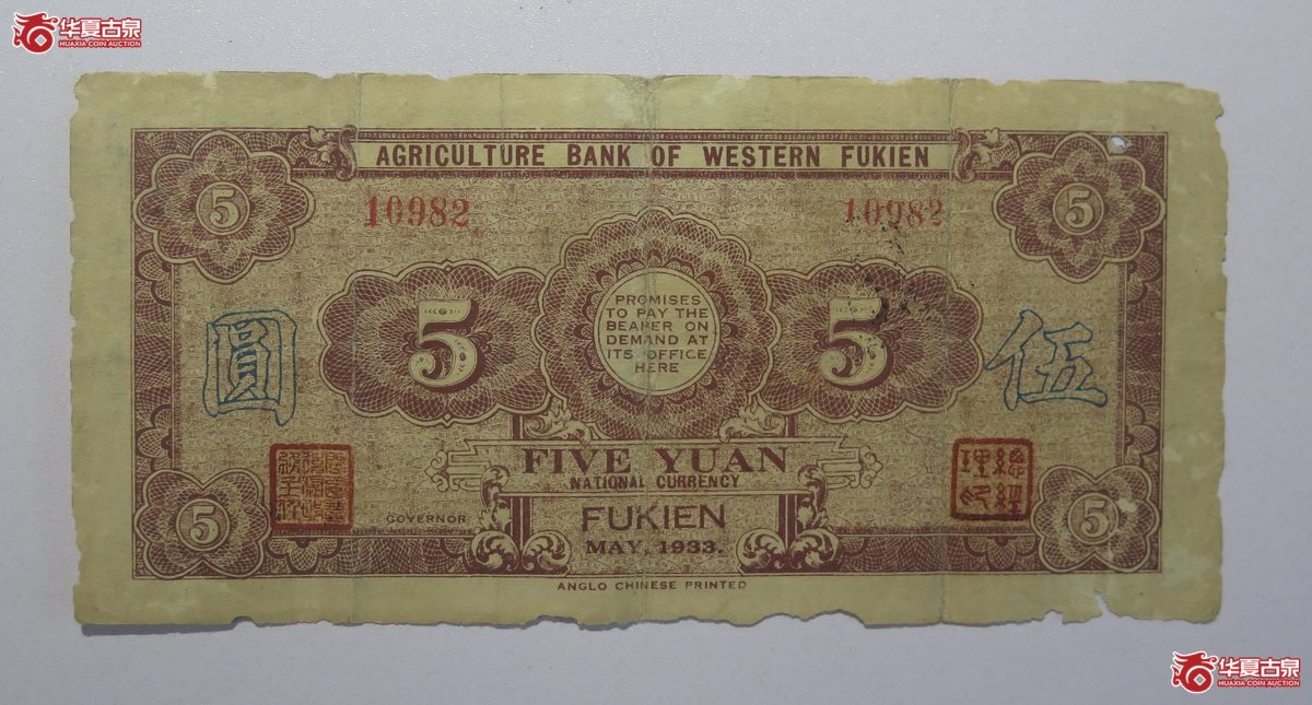 34/民国22年闽西农民银行伍圆:极其珍罕