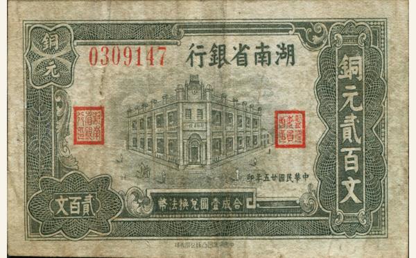 - 民国二十五年民国二十五年湖南省银行叁百文