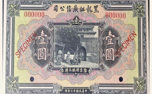 民国纸币民国十三年黑龙江广信公司壹圆票样