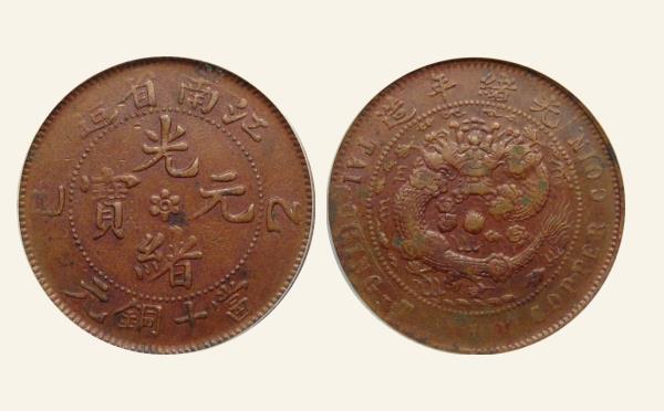 清代铜钱光绪元宝铜元江南省造乙巳十文大眼龙