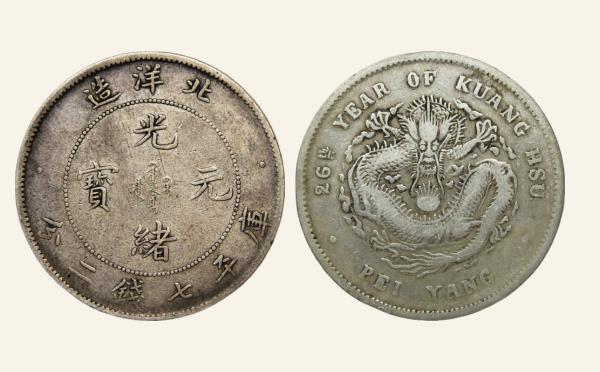 清代银元光绪元宝银元北洋造库平七钱二分26年