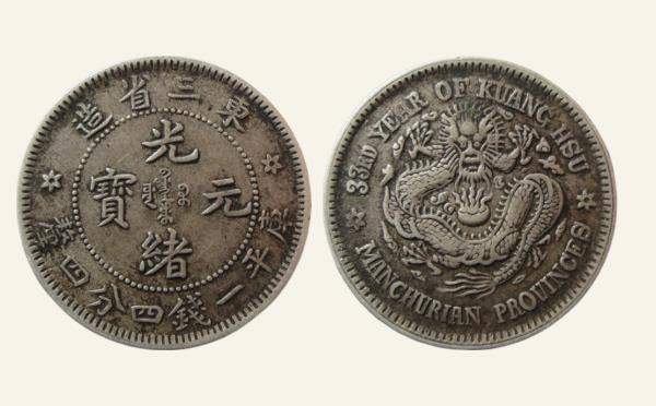 日俄战争后奉天局停造银币,只产铜元,市面现洋短缺。光绪三十三年(1907)清政府将奉天、吉林、黑龙江改为行省,徐世昌任总督,徐将奉天、吉林两局合并成东三省制造银圆总局,银币铭文“东三省造”。