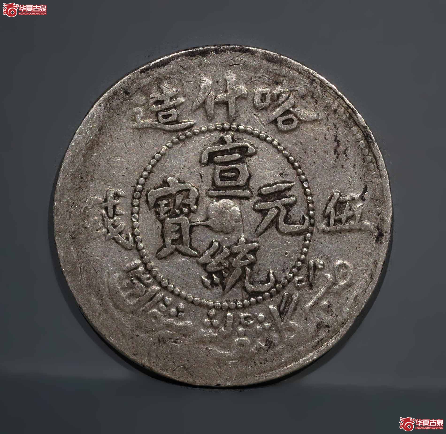 (华夏评级XF45)喀什造宣统元宝伍钱