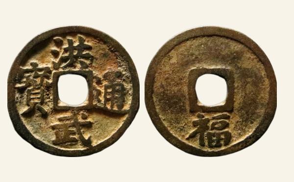 明代铜钱洪武通宝小平背福尔宝单点通