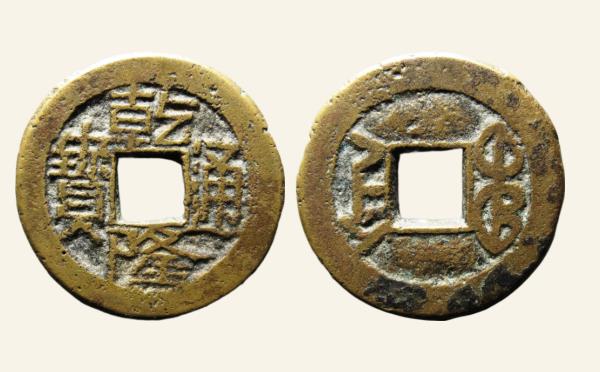 乾隆通宝 极稀逆背 超厚饼子钱 宝陕
