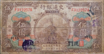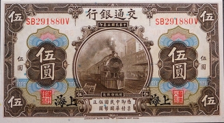民国十六年民国十六年交通银行伍圆美国钞票公司(上海)