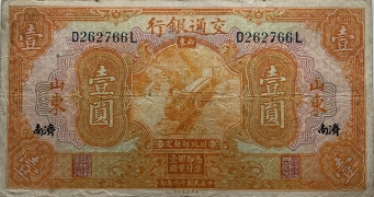 民国十六年民国十六年交通银行壹圆美国钞票公司(山东济南)