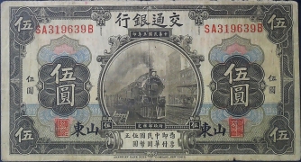 民国十六年民国十六年交通银行伍圆美国钞票公司(山东)