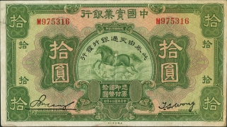 民国二十年民国二十年中国实业银行拾圆(此劵由交通银行发行)