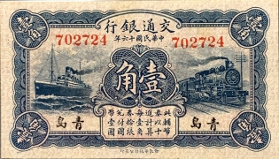 民国十六年民国十六年交通银行壹角华德路版(青岛)面蓝背红