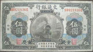 民国十六年民国十六年交通银行伍圆美国钞票公司(山东青岛)