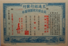 民国三十一年民国三十一年交通银行发行美金节约建国储蓄壹佰元